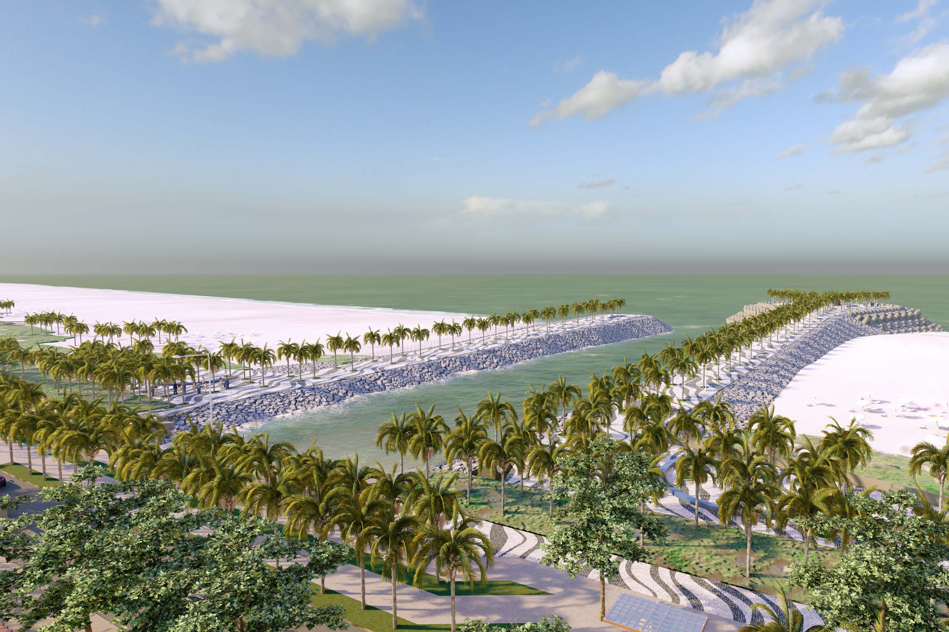 A empresa vencedora deverá realizar serviços de engorda da faixa de areia por meio de aterro hidráulico; estruturas marítimas semirrígidas; canais de macrodrenagem e redes de microdrenagem; e revitalização urbanística da orla marítima com o plantio de árvores nativas. Também serão realizadas melhorias na pavimentação asfáltica e a recuperação de vias.