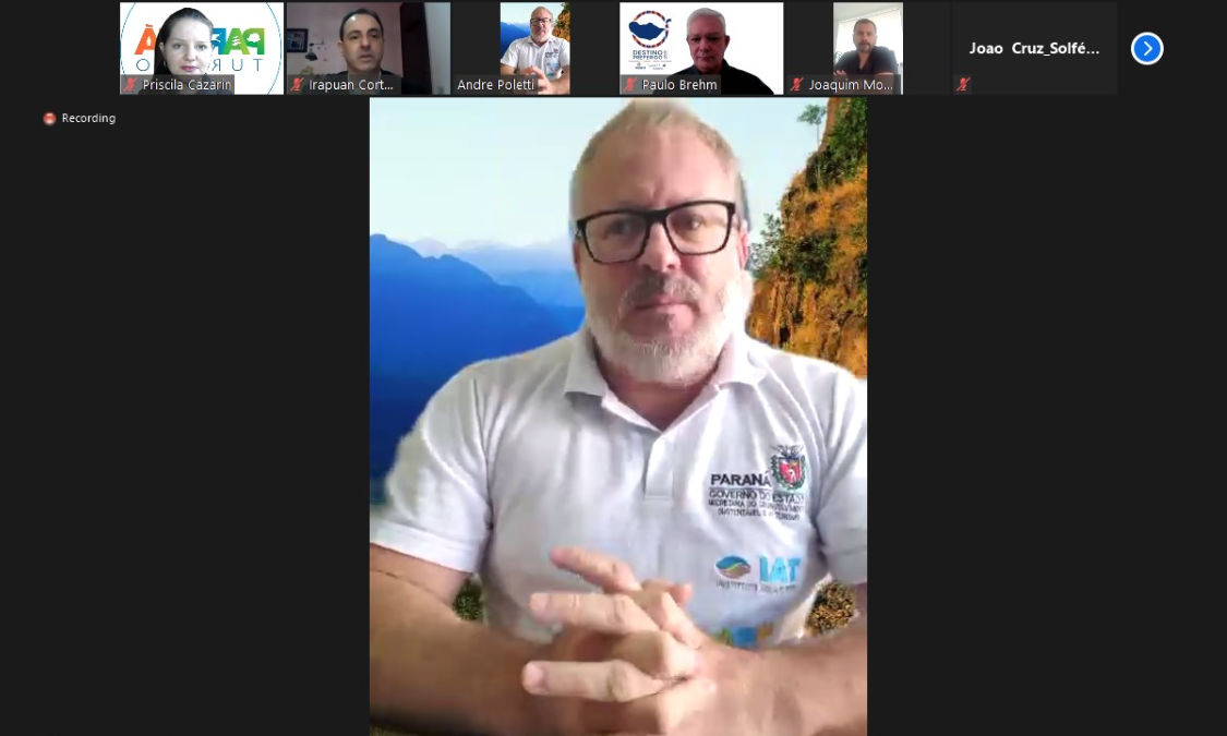 Também participaram do webinar a diretora-técnica da Paraná Turismo, Isabella Tioqueta; o diretor de marketing e inovação, Irapuan Cortes Santos; a assessora-técnica, Priscila Braga Cazarin e representantes da APAVT, Tiago Ferreira Raiano, Paulo Brehm e Joaquim Pereira Monteiro.